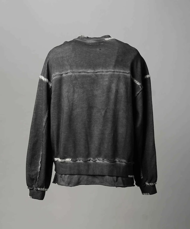 【MAISON SPECIAL】Heavy-Weight Sweat Embroidery Damage Over-Dye Crew Neck Pullover [ブラック] 11252411308