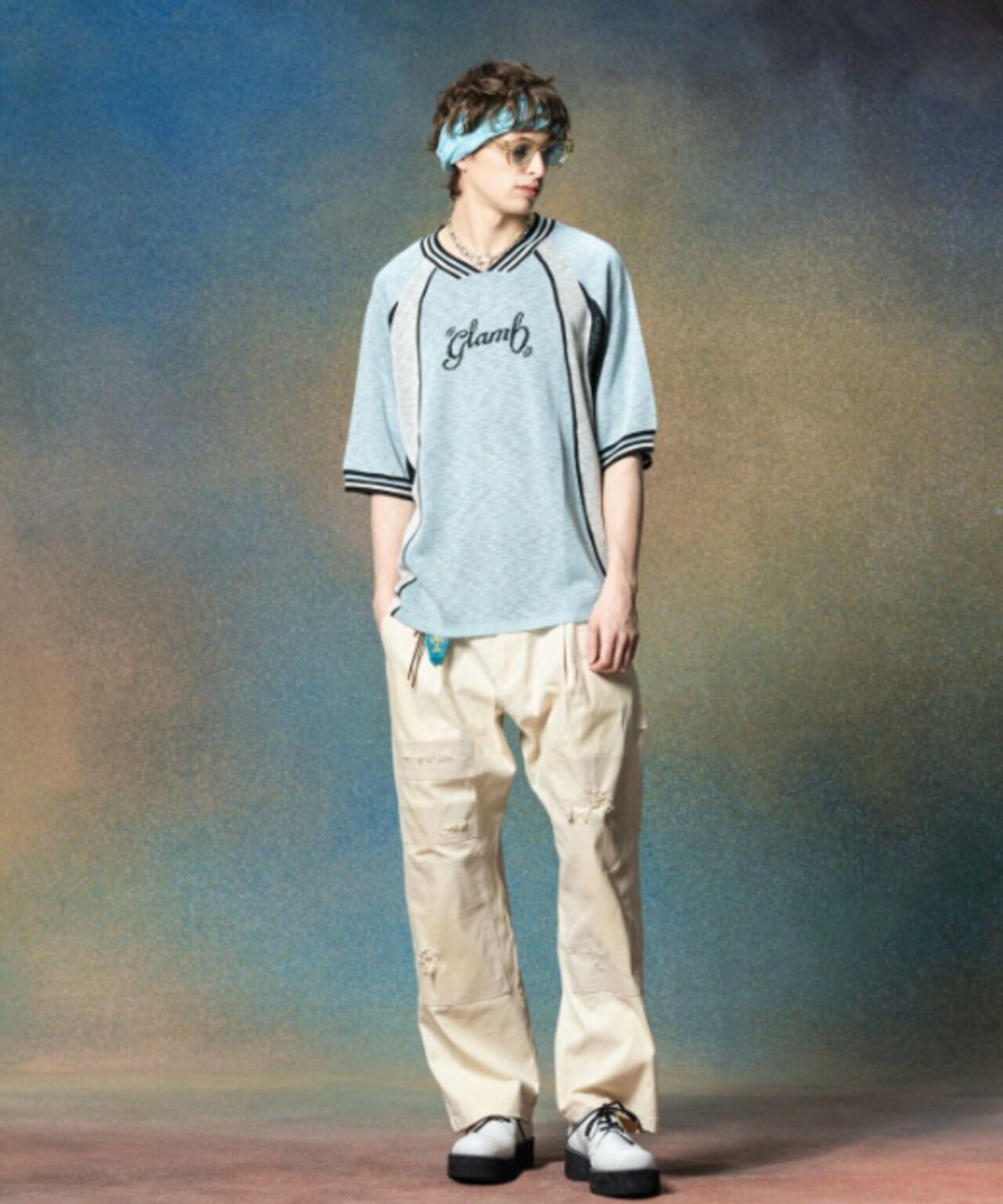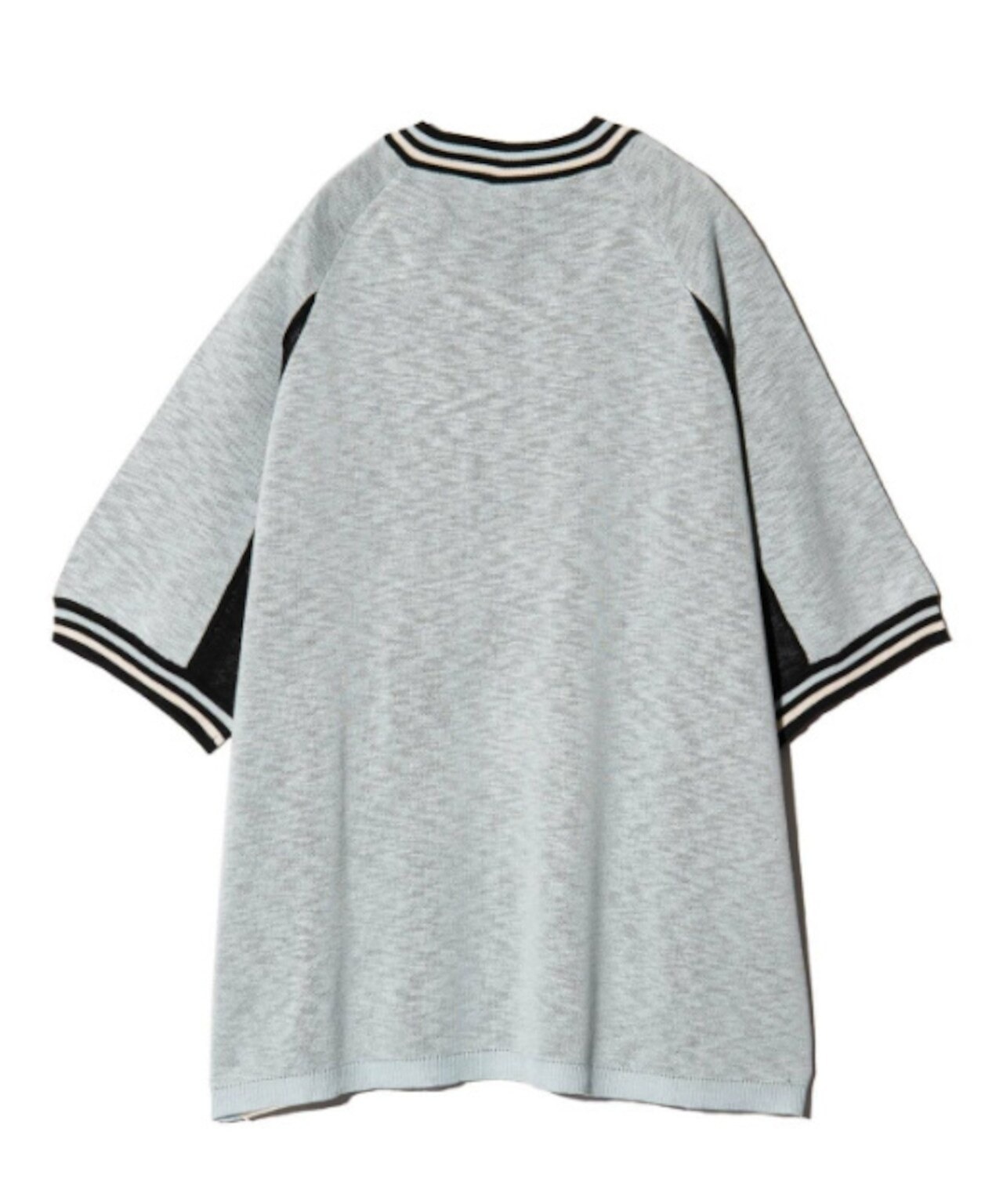 チームユニフォームをニットで再構築、新たなスポーツミックスを提案するFootball Uniform Knit。ラグランスリーブのボディは縦のパネル分けによる2トーン配色。胸元にはブランドロゴ、ネックラインと袖口にはラインリブをあしらいました。シルエットは身幅にゆとりを設けたオーバーサイズ。テキスタイルには落ち感あるテクスチャと清涼感ある肌触りが特徴となるレーヨンをメインに使用して、素材感の面でも夏仕様にまとめています。