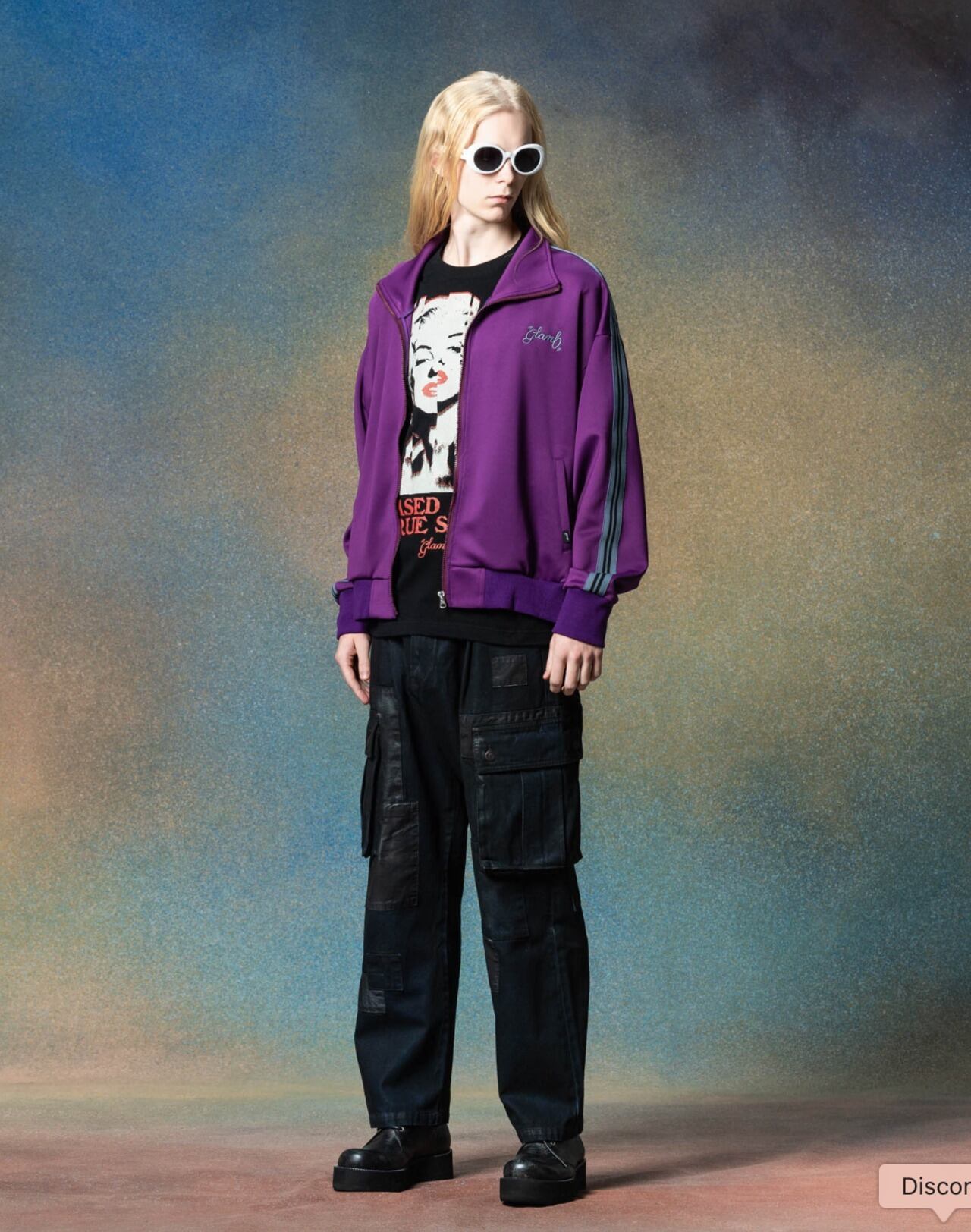 今季のテーマ“TIME TRAVELER”のコンセプトを色濃く反映するシリーズ「TIME TRAVEL GEAR」から、ラインジャージをトラベルウェアとして提案するTIME TRAVELER Packable Jersey (GEAR 006)。皺になりづらいエステルテキスタイルで仕立てたボディは首周りにルーズなドレープを描き出すハイネックがアクセント。アームのラインは2色の糸でピッチを変えて編み立てたオリジナルデザインとなっております。胸元にはglambスピンロゴを刺繍。内側に配されたパッケージに収納できるパッカブル仕様となっておりますが、クッション代わりにもご使用いただけるこちらはパックの内外でレトロとフューチャーを結ぶ遊び心ある仕掛けとなっております。