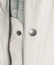 MA-1にストリートマインド溢れるディテールをかけ合わせ、ソリッドなアウタースタイルを提案するSTUNN MA-1。オーバーサイズに設定されたボディは、肩位置はジャストながらアームは袖口にタックを加えてバルーン状のボリュームを構築。裾はMA-1の定番であるリブを省き、代わりに前後差あるラウンドヘムを組み合わせることで真新しい全体像を形作りました。胸元にはスナップボタンを1点あしらっており、スタイリング時にはジップを開けてスナップだけ留めたアレンジも提案。他にもバックスタイルは今季のシーズンディテールであるクロスステッチ、胸元の大ぶりな8号ジップなどこだわりのディテールを随所にちりばめました。