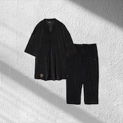 リュクスな質感のテキスタイルが優雅なリゾートルックを提案するGlamour Crepe Shirt Set Up。エレガントな縦畝を見せるテキスタイルは、柔らかな風合いと生地の凹凸が生み出す艶やかな陰影が特徴。畝の一つ一つを摘まみ上げては熱を加え、生地の縮みで凸を固定させるという丹念な製法で仕上げられた生地となっています。トップスはスキッパーカラーとスタンドカラーを組み合わせた抜け感あるオーバーサイズボディ。ボトムスには裾にタックの入った変形パンツを組み合わせてご提案します。