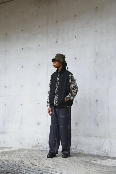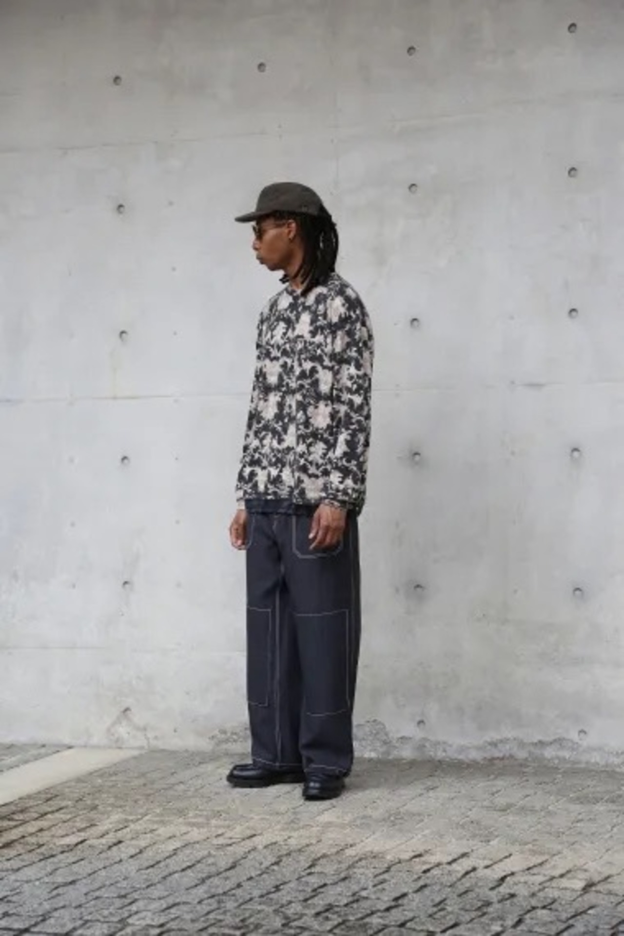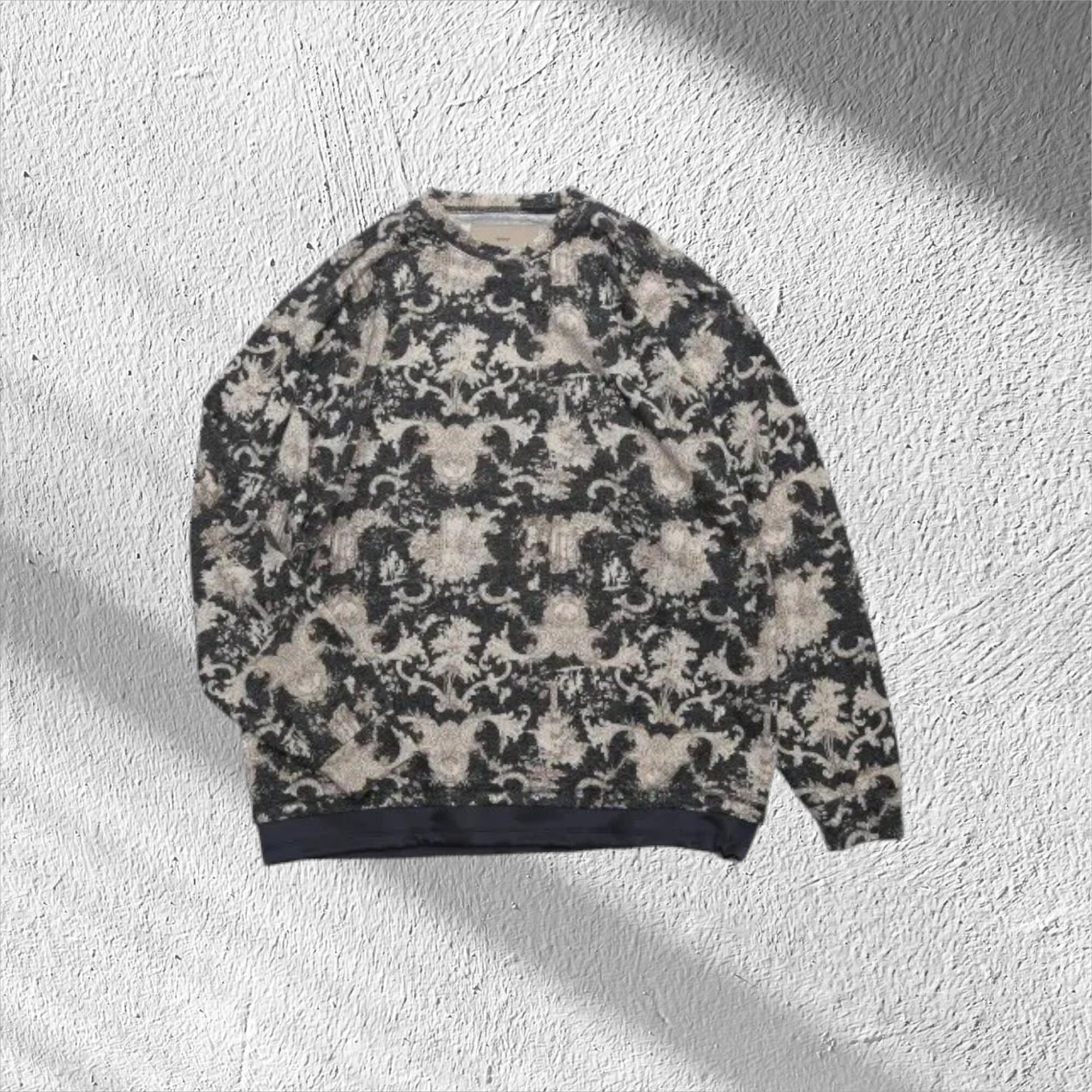 裾をレイヤード状に切り替えたリラックス感のあるニット。裾のドローコードでシルエット、着丈に変化をつけることが可能。色味を抑えた西洋美術柄がコーディネイトのアクセントとして取り入れやすく、ニット特有のやわらかな印象も魅力です。
