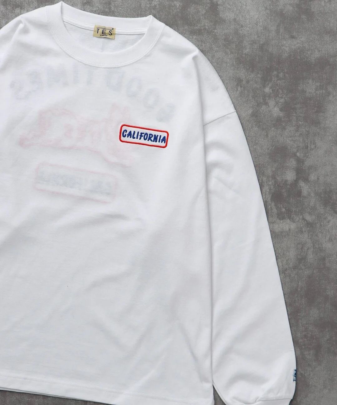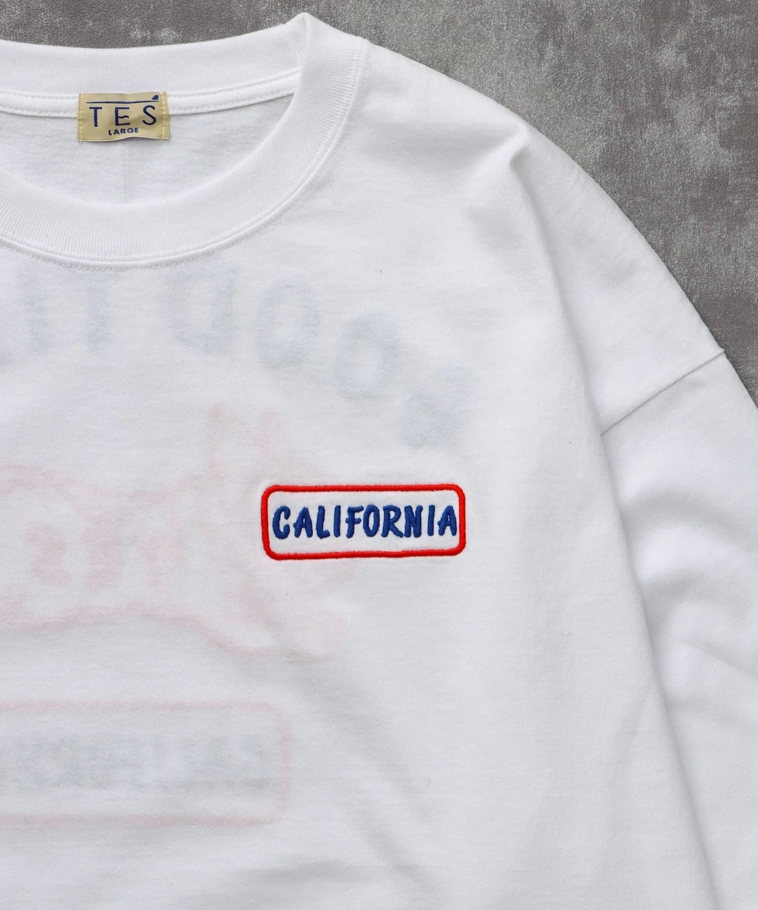 適度な厚さのオリジナル生地のロンTはビッグシルエットで着やすくデザインしました。 レトロな雰囲気にデザインされたグラフィックは全て刺繍、チェーン刺繍も多用し ビンテージテイストに仕上げました。