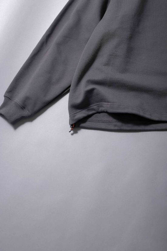 柔らかい吊り裏毛を使用したクルーネックトップ。