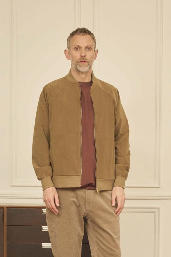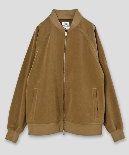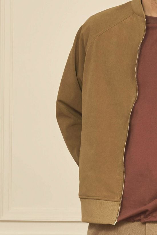 リアルな表情のヴィーガンスエード素材を使用したトラックジャケット。