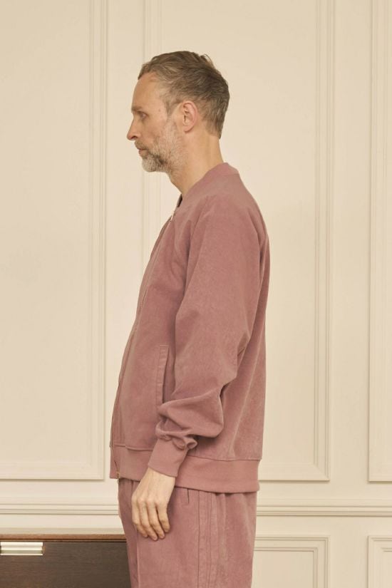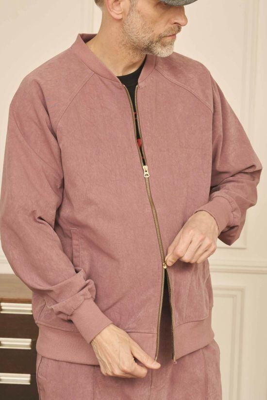 リアルな表情のヴィーガンスエード素材を使用したトラックジャケット。