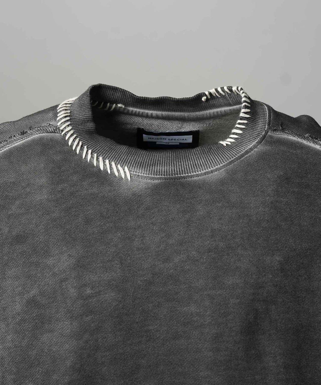 【MAISON SPECIAL】Heavy-Weight Sweat Embroidery Damage Over-Dye Crew Neck Pullover [ブラック] 11252411308 | select shop SOLT