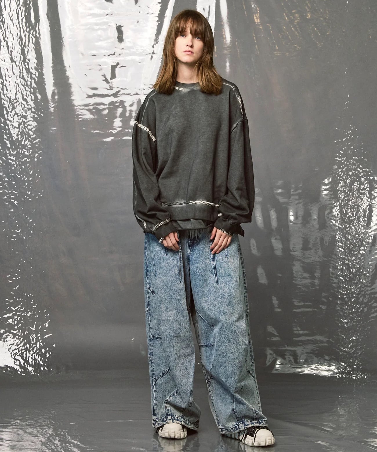 Name:ヘビーウェイトエンブロイダリーダメージオーバーダイクルーネックプルオーバー