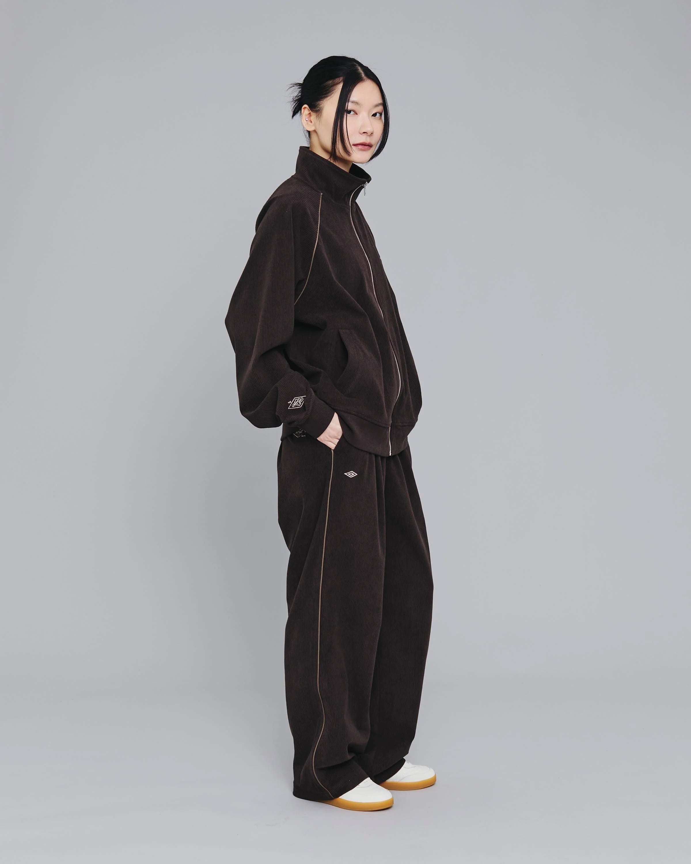 柔らかなストレッチコーデュロイを使用したトラックジャケットです。アーム部分にはパイピングでアクセントを加え、身幅はやや広めのボックスシルエットとなっています。