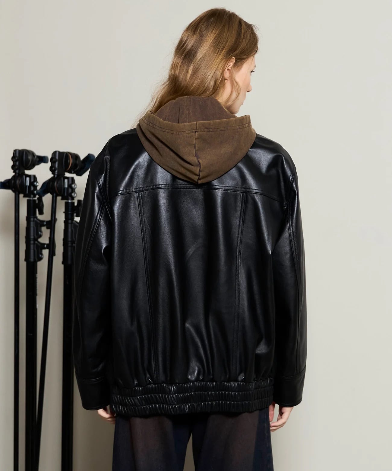 柔らかなラムレザーを使用したメンズライクなオーバーサイズジャケット。