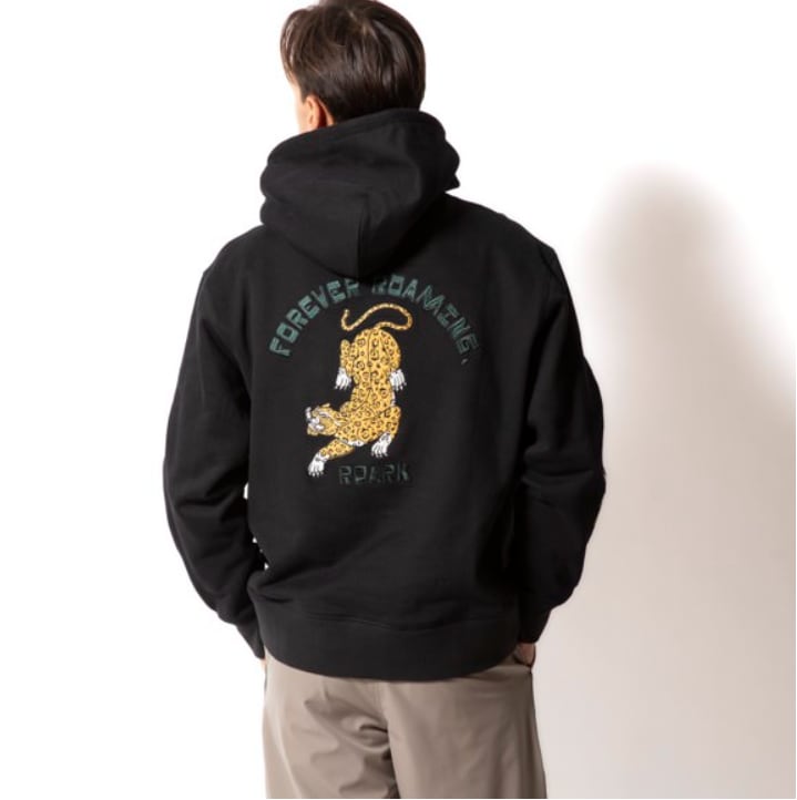 12.5ozの裏毛仕様で適度にリラックスしたシルエット。グラフィックは刺繍で表現。